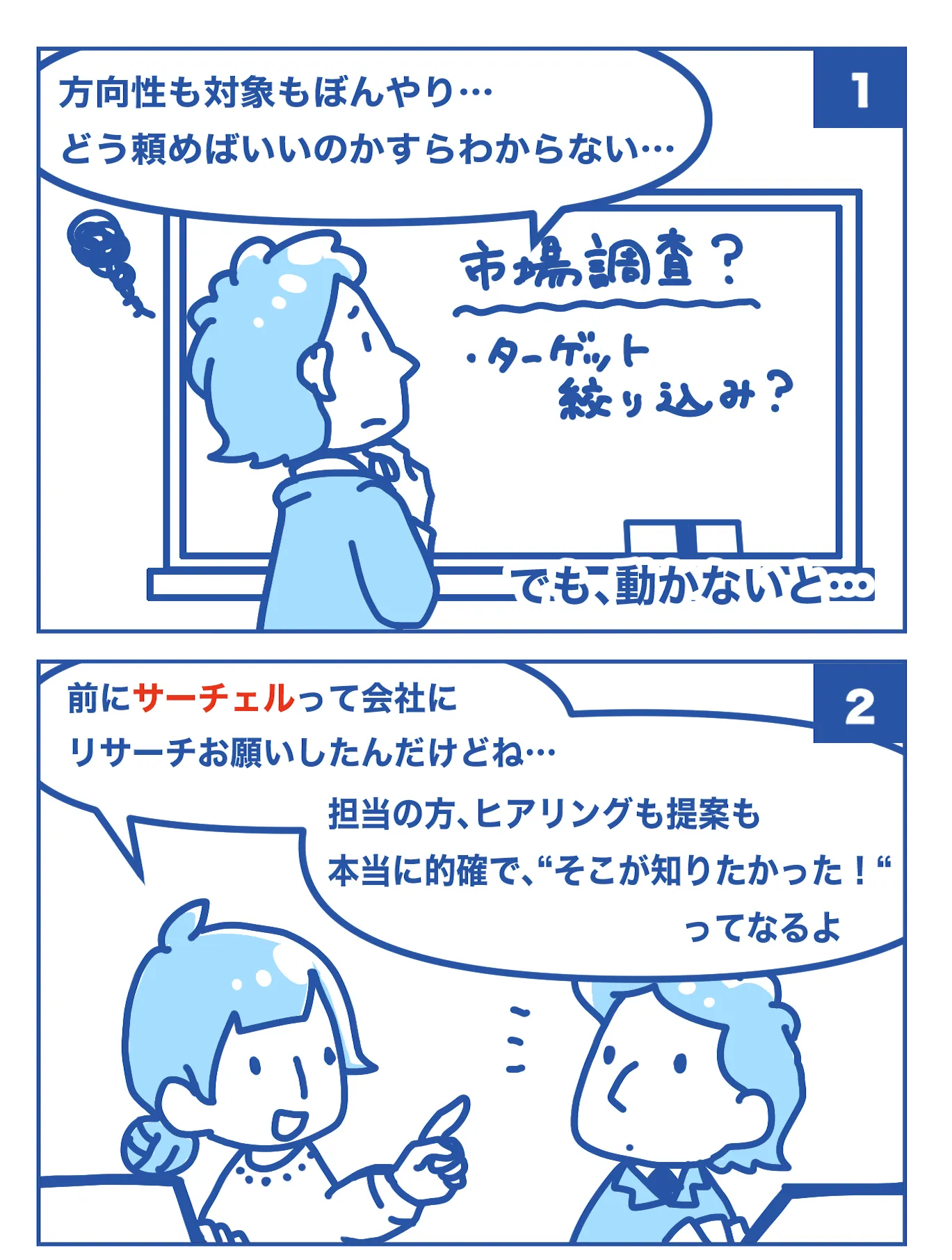 株式会社サーチェルは、あらゆる業界・分野での「調べてほしい」「傾向を掴みたい」「意思決定に活かしたい」といったリサーチニーズにお応えする、総合型リサーチ会社です。